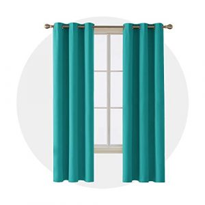 Deconovo Grommet Thermal Insulated Curtains Room Darkening Window Panels for Kitchen Width 42 Inch by Length 84 Inch Turquoise Four Curtain Panels