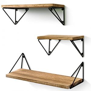 BAYKA Floating Mounted Set of 3 Rustic Wood Wall Shelves for Living Room, Bedroom, Bathroom, 3 Count