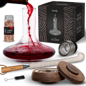 2-In-1 Decanter Set + Whisky and Wine Wooden Smoker – 60 Fl Oz, Glass Decanter – Scotch, Bourbon, Red Wine Handmade Decanter Set – Gift for Men – Uncommon Gift for Him