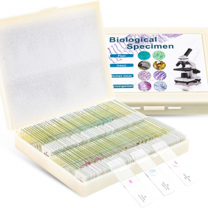 100 Prepared Microscope Slides with Specimens for Kids Adults – Bacterium, Fungus, Human Tissues, Mitosis, Plants, Insects, Animals Cells Samples for Biological Science Lab, School Students