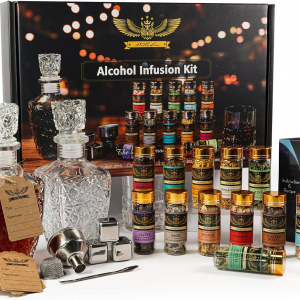Alcohol Infusion Kit for Infusing Whiskey, Gin, Vodka, Tequila, Rum – DIY Your Own Flavored Spirits with Natural Ingredients – Anniversary, Birthday Gift for Men, Husband