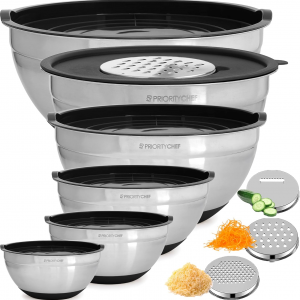 6Pc Large Mixing Bowls with Lids Set with Non-Slip Bases, Stainless Steel Mixing Bowl Set, 6 Airtight Lids and 3 Graters, Black