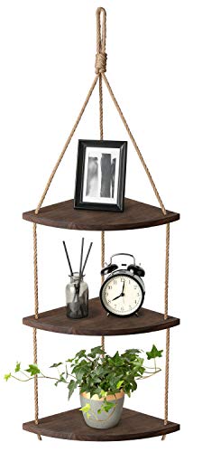 - ✔ Vintage Hanging Corner Shelves: Designed with natural wood with twisted jute ropes, it looks simple and modern. Dark brown on its surface makes it in retro feeling, prefect as home decoration. Hanging in living room, bedroom, dinning room, bathroom, kitchen, or any corner wall. Decorative props are not included in this item!