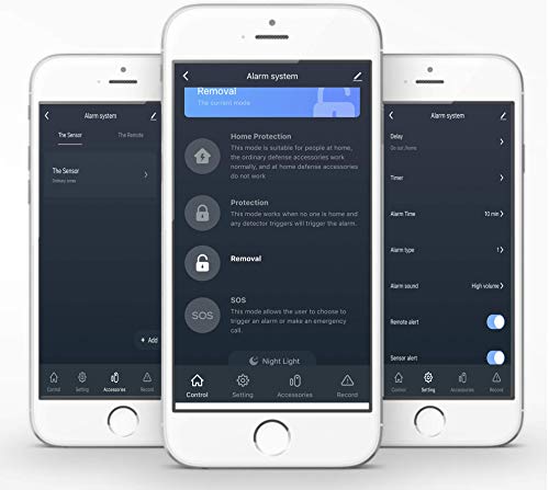 - With a free smartphone app, The Home Smart Alarm System can be easily controlled by arming, disarming, and home modes with also a simple remote control. In the event of an emergency, you can also seek help by pressing the “SOS” button to send a help signal.
