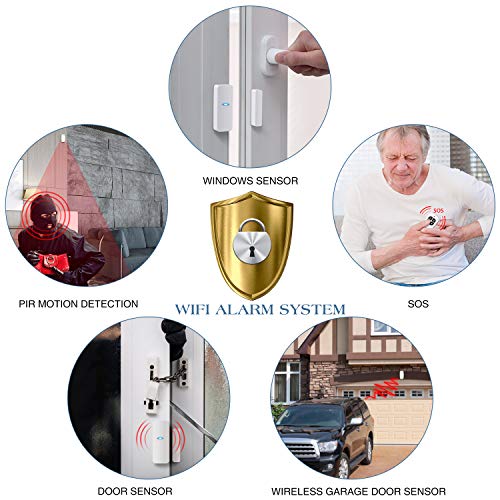 - 📢 Wifi security system: With a free IOS/Android smartphone app, it can be easily controlled by arming, disarming, and home modes with also a simple remote control. In the event of an emergency, you can also seek help by pressing the “SOS” button to send a help signal