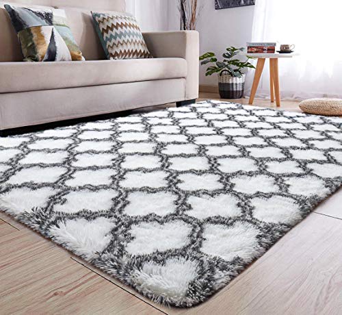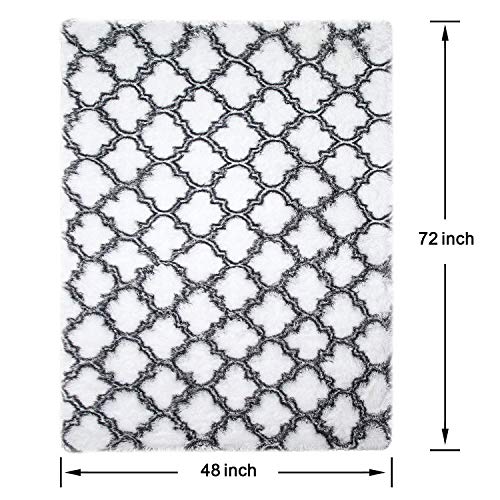 YJ.GWL Soft Indoor Large Modern Area Rugs Shaggy Patterned Fluffy Carpets Suitable for Living Room and Bedroom Nursery Rugs Home Decor Rugs for Christmas and Thanksgiving 4’x6’White Trellis